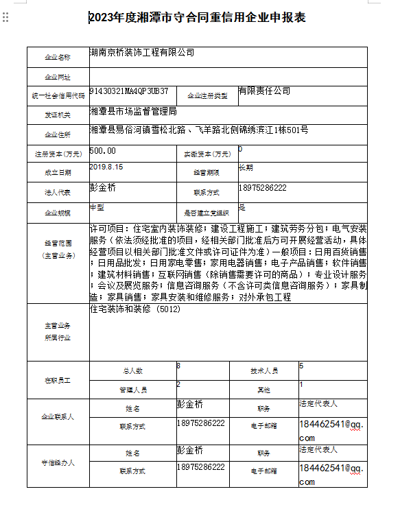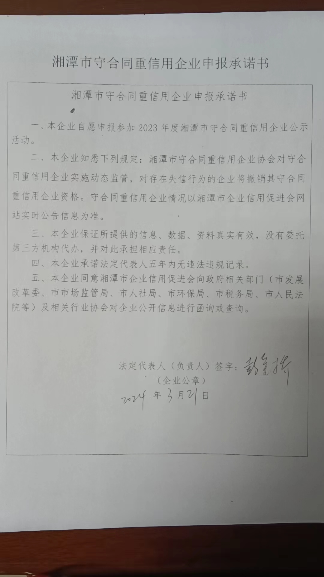 本企業(yè)根據(jù)《湘潭市守合同重信用企業(yè)申報(bào)規(guī)定》等編制 2023 年度企業(yè)信用報(bào)告書,并保證本報(bào)告書內(nèi)容真實(shí)、準(zhǔn)確、完整。