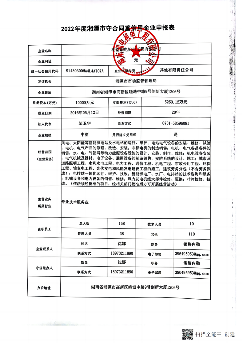 本企業(yè)根據(jù)《湘潭市守合同重信用企業(yè)申報規(guī)定》等編制 2022 年度企業(yè)信用報告書,并保證本報告書內(nèi)容真實、準確、完整。