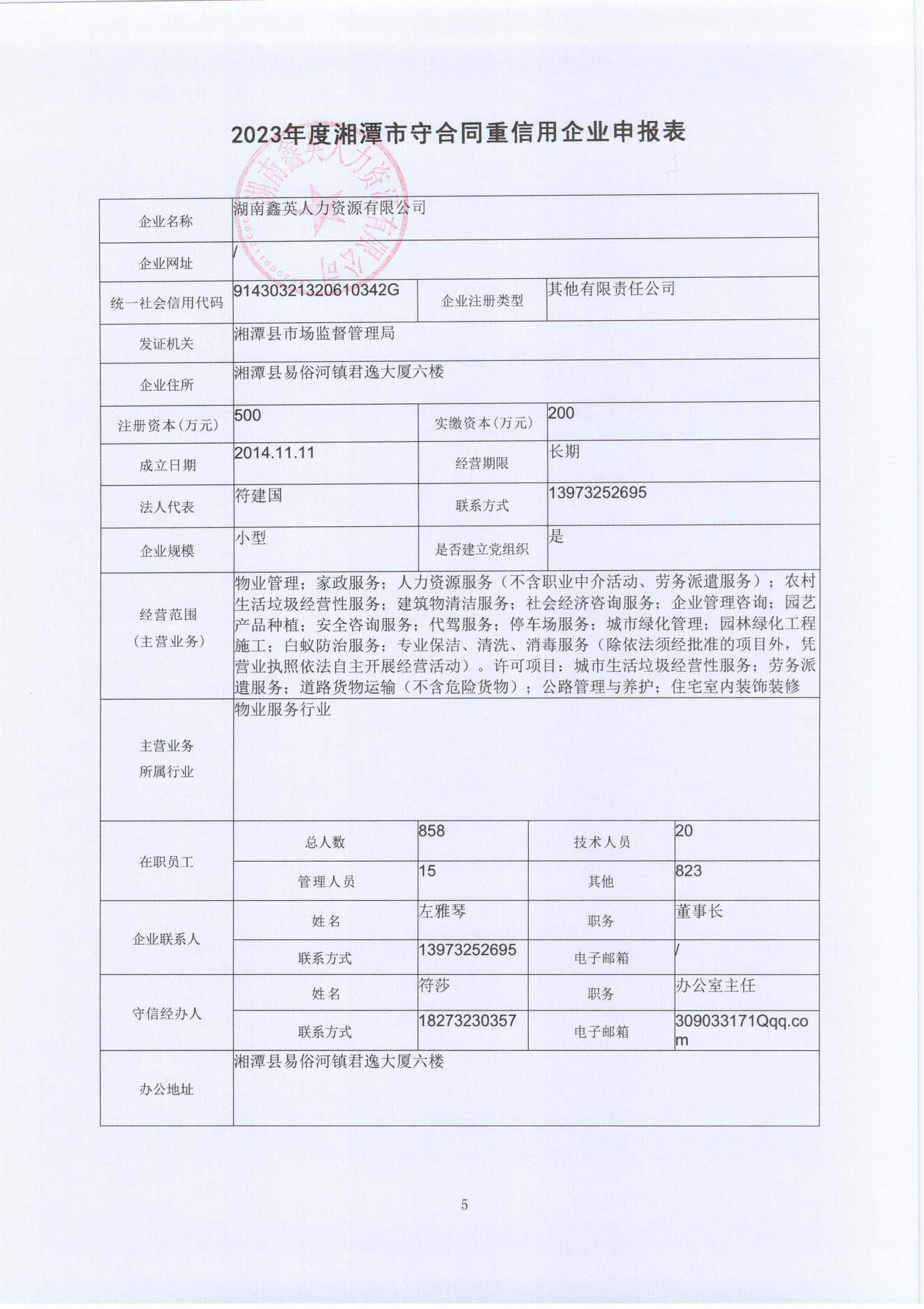 本企業(yè)根據(jù)《湘潭市守合同重信用企業(yè)申報規(guī)定》等編制 2023 年度企業(yè)信用報告書,并保證本報告書內(nèi)容真實、準確、完整。